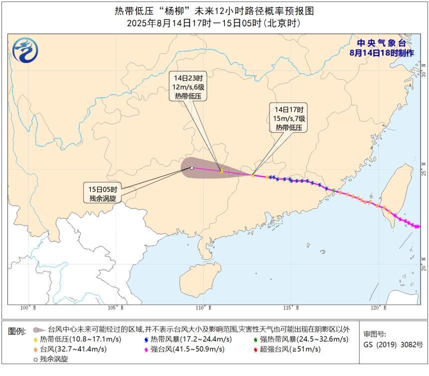 17时,台风“杨柳”中心位置